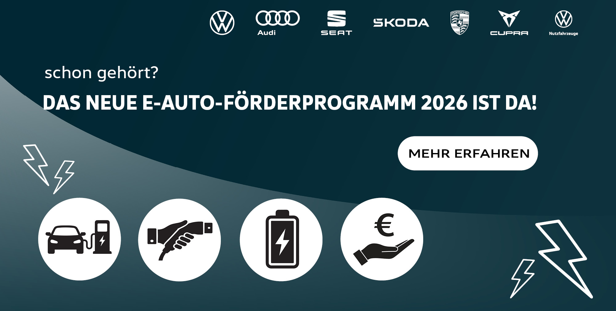 Immer mehr vollelektrische Modelle erobern den Fahrzeugmarkt. Sie überzeugen durch eine emissionsfreie und effiziente Fahrweise, egal ob auf Kurz- oder Langstrecke. Genau deshalb wird die CO2-reduzierte Mobilität durch die Auszahlung der Innovationsprämie beim Kauf eines E-Autos staatlich gefördert. Welches Elektroauto zu Ihnen passt? Gerne finden wir es gemeinsam mit Ihnen heraus. Die Standorte der Held & Ströhle Gruppe haben fünf Fahrzeugmarken mit viel Know-how in Sachen Elektromobilität im Angebot. Wir freuen uns auf Ihren Besuch!